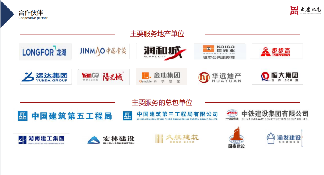 在公司“誠(chéng)信、務(wù)實(shí)、精進(jìn)、共贏”的企業(yè)核心價(jià)值觀的引導(dǎo)下,我們已與恒大地產(chǎn)、金茂地產(chǎn)、龍湖地產(chǎn)、旭輝地產(chǎn)、佳兆業(yè)地產(chǎn)、榮盛地產(chǎn)、保利地產(chǎn)、華遠(yuǎn)地產(chǎn)、萬達(dá)廣場(chǎng)、步步高商業(yè)等開展了長(zhǎng)期的深度合作,并承接了國(guó)家、省政府等重點(diǎn)項(xiàng)目,如機(jī)場(chǎng)、軌道交通、醫(yī)院、大中院校等。優(yōu)質(zhì)的產(chǎn)品保障、完善的服務(wù)體系100%的消防驗(yàn)收通過率使湖南大唐電氣贏得了全國(guó)客戶的贊譽(yù)。